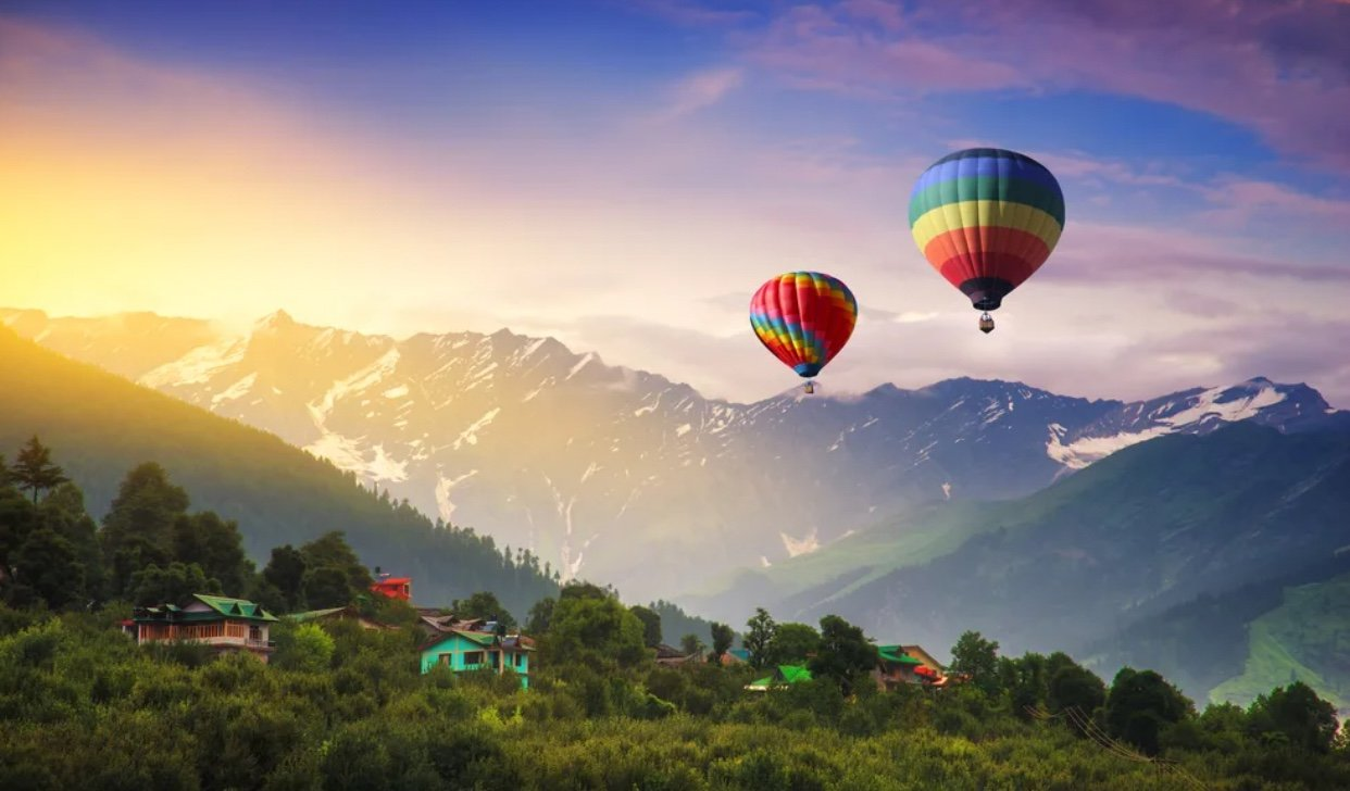 HOT AIR BALLOON: Hot air ballooning in Manali is one of the most exotic adventure sports in Manali. This is a concept which is gaining buzz amongst tourists. Floating up in an air balloon is an activity which appeals to people of all age groups right from kids to middle aged couples.